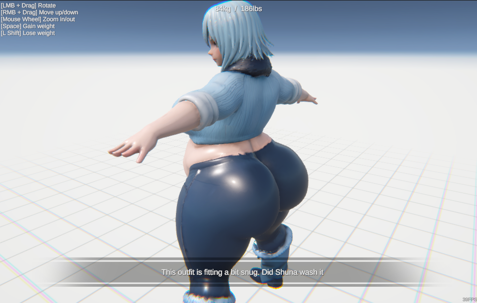 [Disclaimer] This game contains content related to weight gain, BBW, feederism, and extreme obesity fetishes. If this isn't your thing, please turn back now! [Features] - 3D model that can gain weight from 50kg all the way to tons - Camera movement with character eye-tracking response - Idle animation with weight gain and breathing - Adorable dialogue depending on weight (about 40 lines) This is my first time releasing a 3D game! It's more like a very simple WG sim than an actual game, but I...