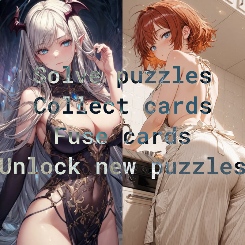 I have created a jigsaw puzzle game inspired by the "fusion" mechanic (You lost two elements to create a new one). Enjoy solving 28 different puzzles. If you play it I hope you enjoy playing it and hopefully see a comment; I want to known if such mechanic is as fun for you as for myself. By the way, to fuse cards from your album you first have to complete them and then select two from them to fusion. In a few parts I made a little change about the images: I chose two artists instead of only...